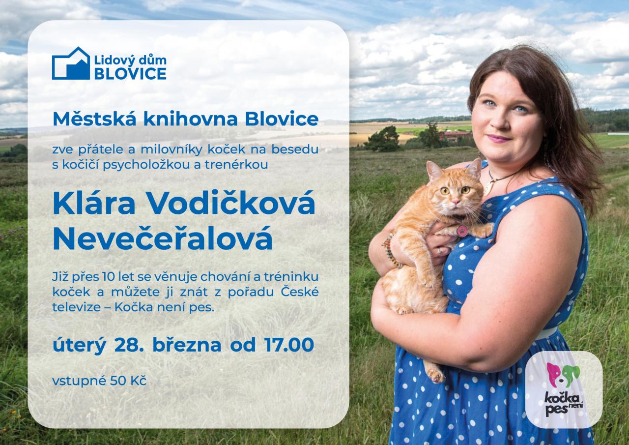 Městská knihovna zve přátele a milovníky koček na besedu s kočičí psycholožkou a trenérkou dne 28. 3. 2023 od 17:00. Znáte z pořadu České televize - Kočka není pes!