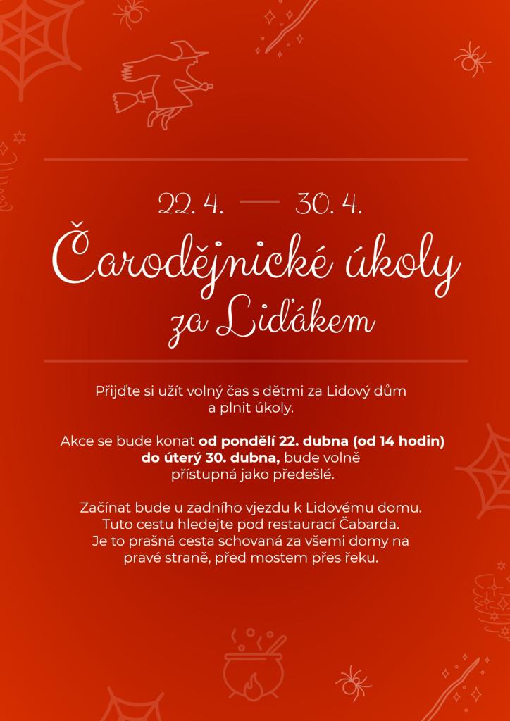 Přijďte si užít volný čas s dětmi za Lidový dům a plnit úkoly. Akce se bude konat od pondělí 22. dubna (od 14 hodin) do úterý 30. dubna, bude volně přístupná jako předešlé.
