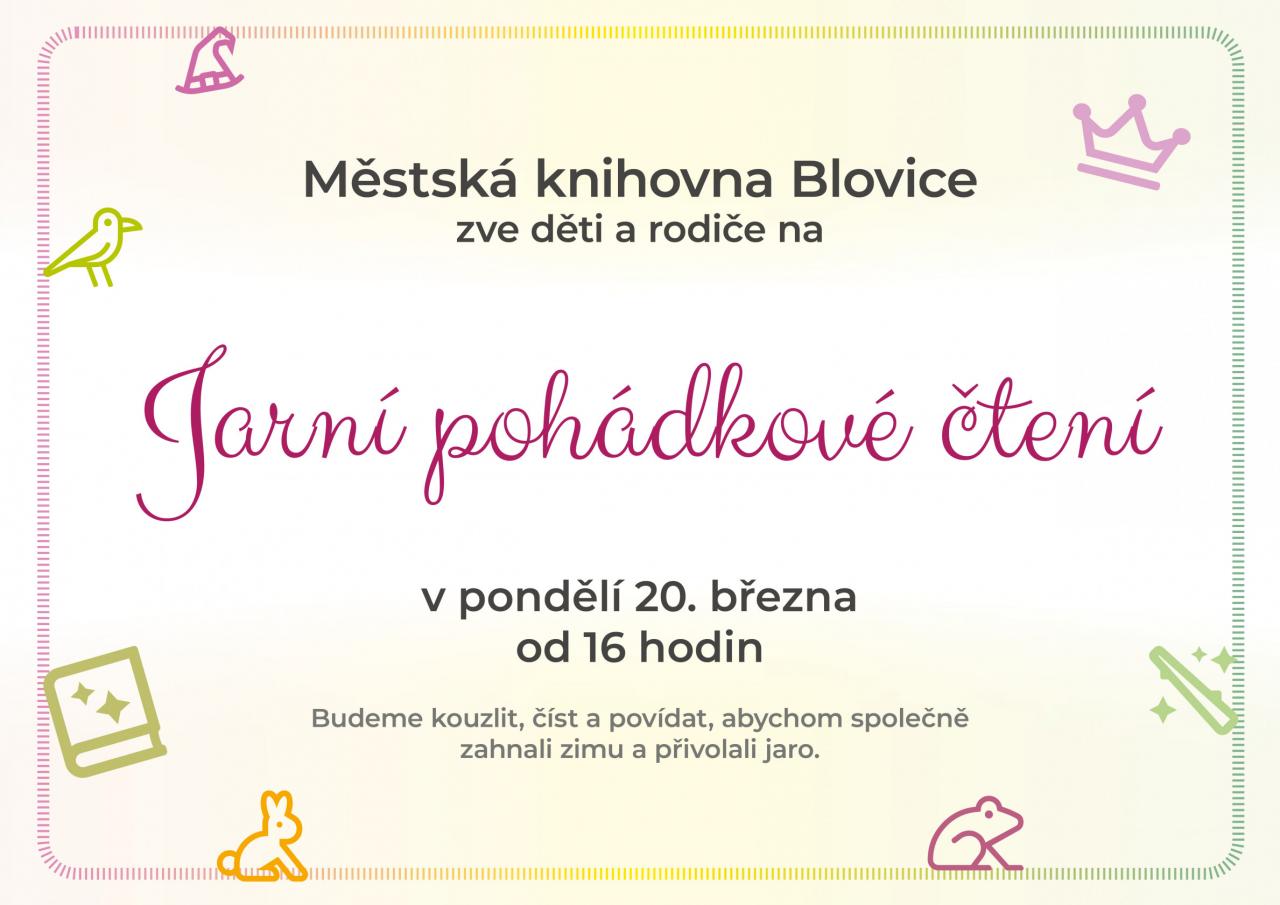 Městská knihovna zve děti a rodiče na jarní pohádkové čtení dne 20. 3. 2023 od 16:00.