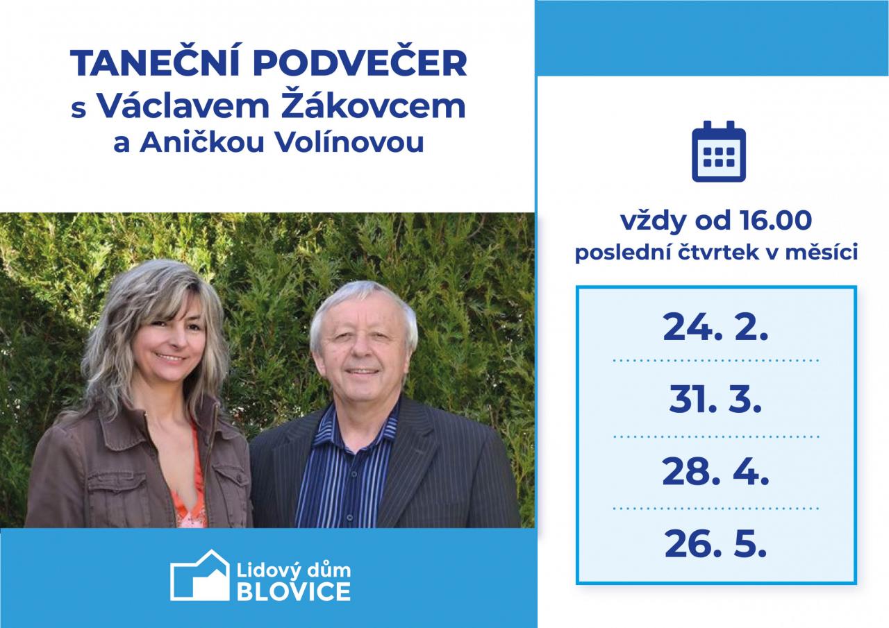 V první polovině letošního roku se můžete těšit na tradiční taneční podvečery s Václavem Žákovcem a Aničkou Volínovou! Termíny: 24.2., 31.3., 28.4., 26.5.